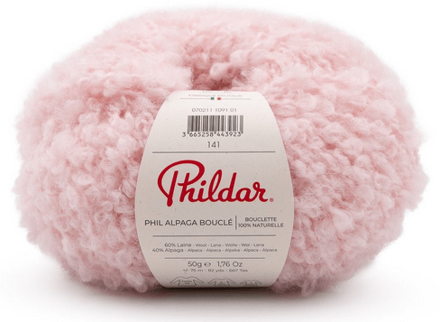phil alpaga bouclé 50 grammes 75 mètres 40% alpaga, 60% laine aiguille 6 8 pelotes pour une taille 42 10x10 : 12 mailles x 17 rangs
