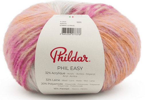 phil easy 32% acrylique, 16% alpaga, 32% laine, 20% polyamide -Aiguilles 7-150 grammes-375 mètres-