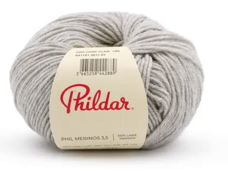 phil merinos 3.5 100% laine. Aiguilles 3,5. 50 grammes-130 mètres. 10cmx10=32r 24m. pull T.42 ≈11 pelotes
