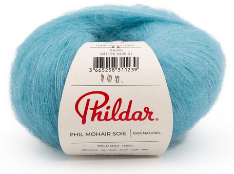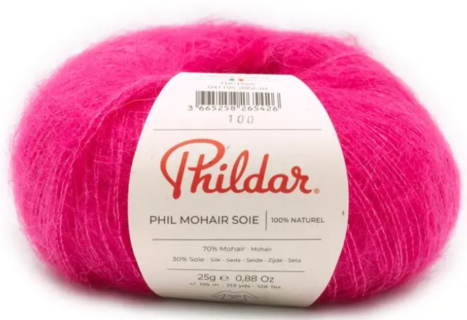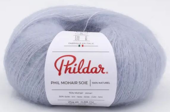 phil mohair soie 70% mohair, 30% soie .25G-195m-Aiguilles 5- 10cmx10=18 mailles x24 rangs