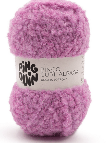 pingo curl alpaga 10% alpaga - 16% laine - 54% acrylique - 20% polyester - 50 grammes - 70 mètres - 10x10 : 13 mailles × 20 rangs - 10 pelotes pour une taille 42 - aiguille 6